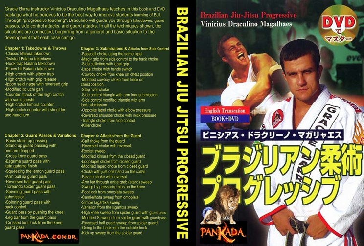 | Resumo Instrutor da Gracie Barra Vinicius Draculino Magalhães ensina neste DVD o que ele acredita ser o melhor metodo para melhorar o aprendizado de BJJ dos estudantes. Através de “ensinamento progressista, Draculino irá guiá-lo por quedas, Passagens de guarda, 100 kilos, e ataques na guarda. em todas técnicas mostradas, as situações estão ligadas, começando a partir de uma situação geral e básica para o desenvolvimento que cada caso pode tomar. Capitulo 1: Quedas e Arremessos – Queda Baiana Clássica