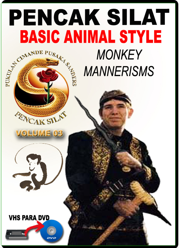 Este vídeo cobre os maneirismos do monyet ou do macaco. Pendekar Sanders demonstra detalhadamente os movimentos e técnicas especiais de luta de cada animal para que o praticante possa aprender os princípios de cada um.