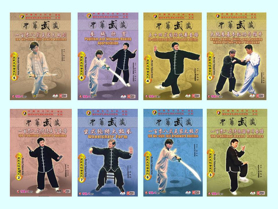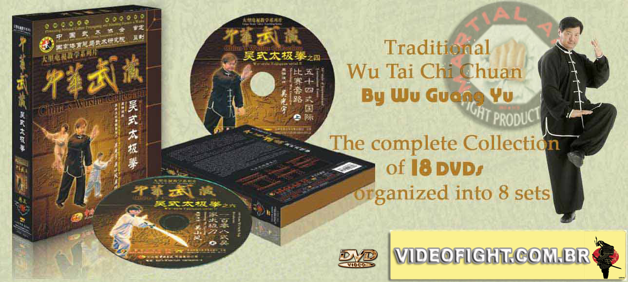 Esta forma de espada Tai Chi muito longa do estilo Wu também é leve, fina e gentil. Alguns movimentos incomuns para a espada direta (como um braço carregado e um corte na cabeça) destacam esta performance. O jogo de pés na espada reta é revelador de jogadas de nível superior do estilo básico (como deve ser nas performances das espadas de Tai Chi). O conjunto é demonstrado pela Sra. Wu Xiao Feng, um detentor de quinta geração que aprendeu de seu avô Wu Kong Yi e seu pai Wu Tai Kwoi. Este conjunto também é conhecido como Espada do Céu e da Terra (Qian Kun). DVD TRIPLE.