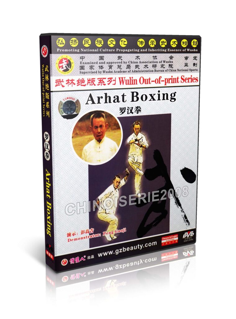 | O Arhat Boxing é contínuo e vigoroso. Seus movimentos são iniciados conjuntamente por pernas e mãos. Os movimentos das mãos são imprevisíveis e os dos pés são tão ágeis quanto para dirigir o corpo. Os movimentos são marcados por força, vivacidade e velocidade. Enquanto atacam, eles são como tigres famintos correndo pelas montanhas. Os movimentos são marcados por flutuar e afundar, engolir e cuspir, esquivar-se e agarrar, e poder por apertar, cortar, dureza e suavidade. O movimento elástico e estável dos pés torna cada movimento das pernas tão leve quanto o surpreendente ganso-cisne, tão estável quanto uma montanha. · Palestrante: Peng Gaoji · Formato: MP4 · Língua que fala: chinês · Subtítulo: Inglês / Chinês · Duração: 66’31 “